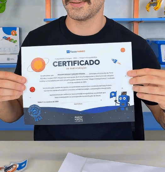 Por isso, criamos o Programa de Embaixadores Fuzzy, uma formação exclusiva que prepara profissionais para representar a Fuzzy localmente e levar robótica educacional e letramento tecnológico para professores, escolas e alunos em todo o Brasil.